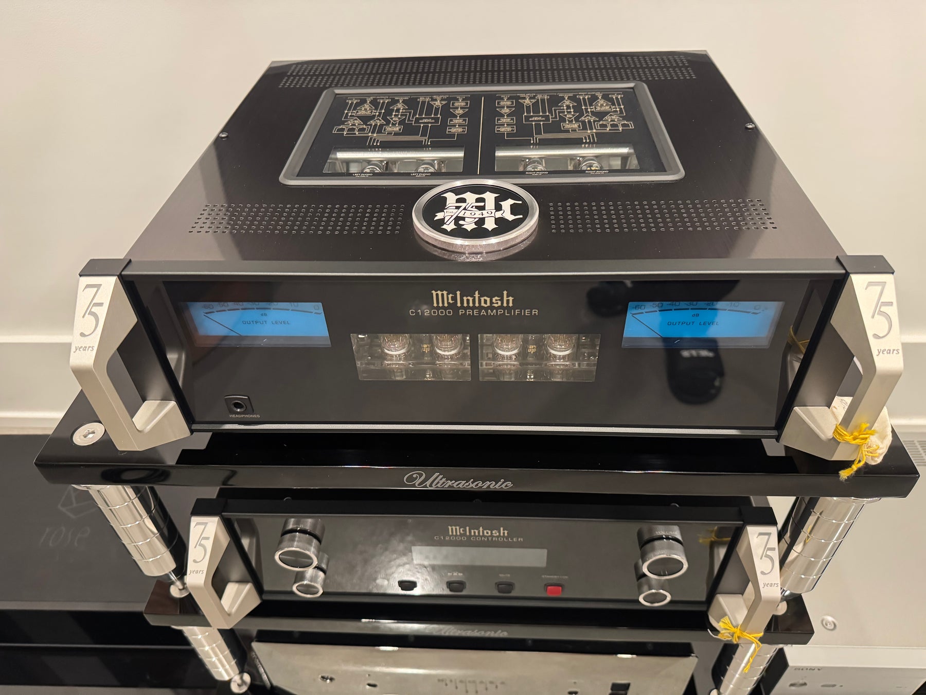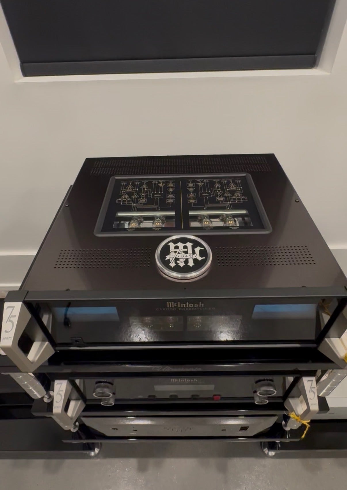 • Meters: Iconic blue McIntosh watt meters with 75th Anniversary logo