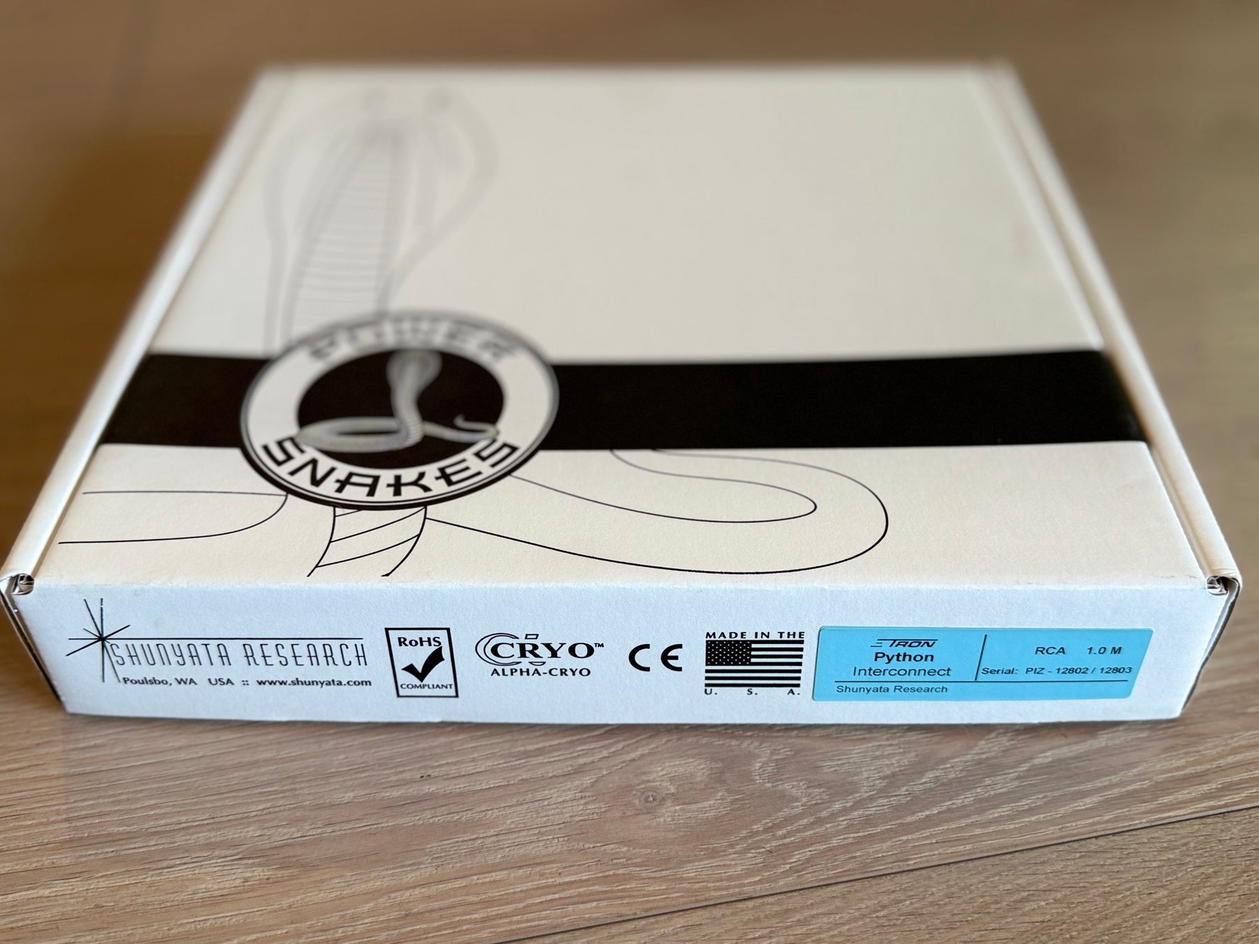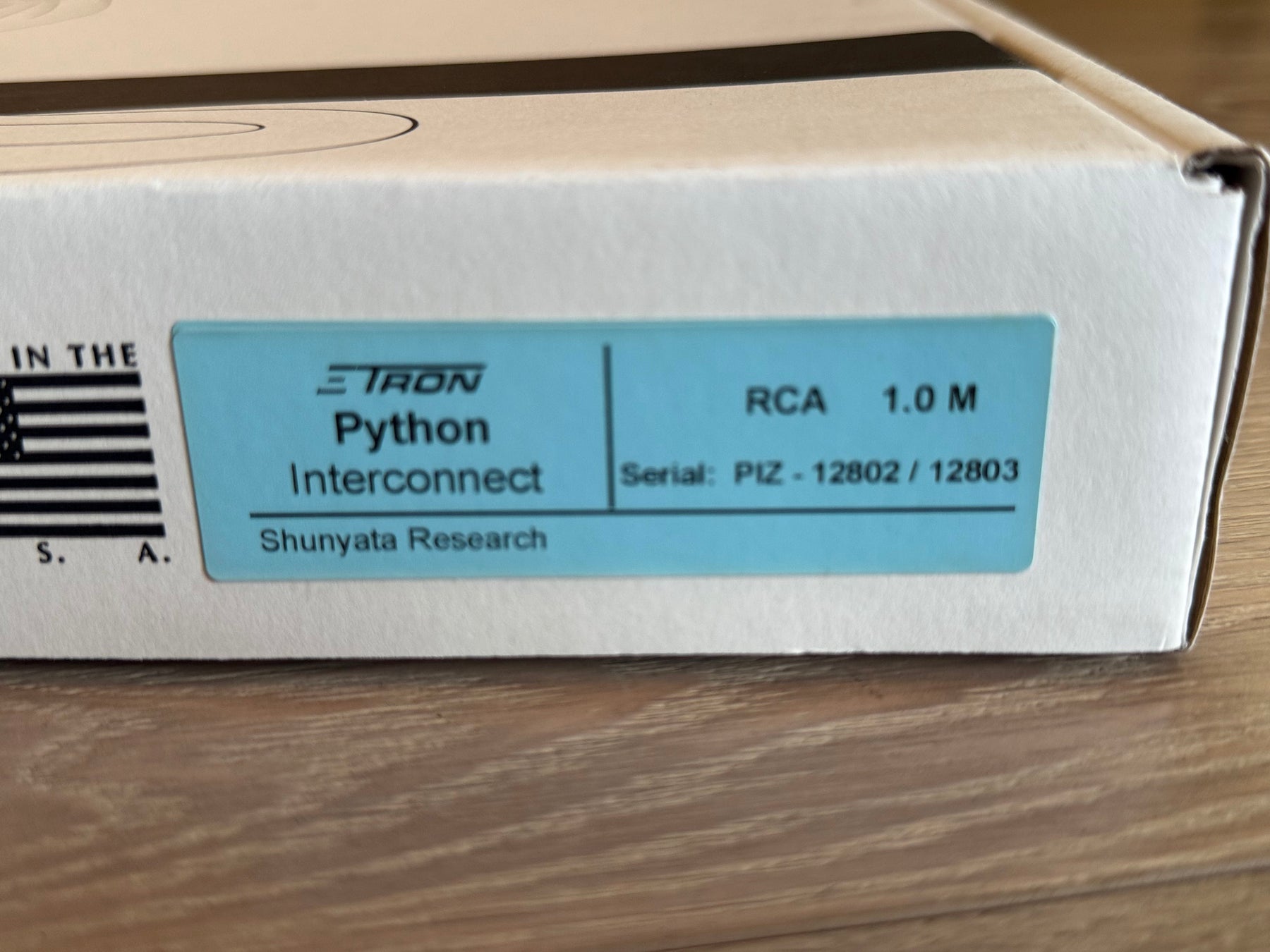 Included in Sale: ☑ Pair of Shunyata Research E-Tron Python RCA Interconnects (Serials 12802 & 12803) ☑ Original box included