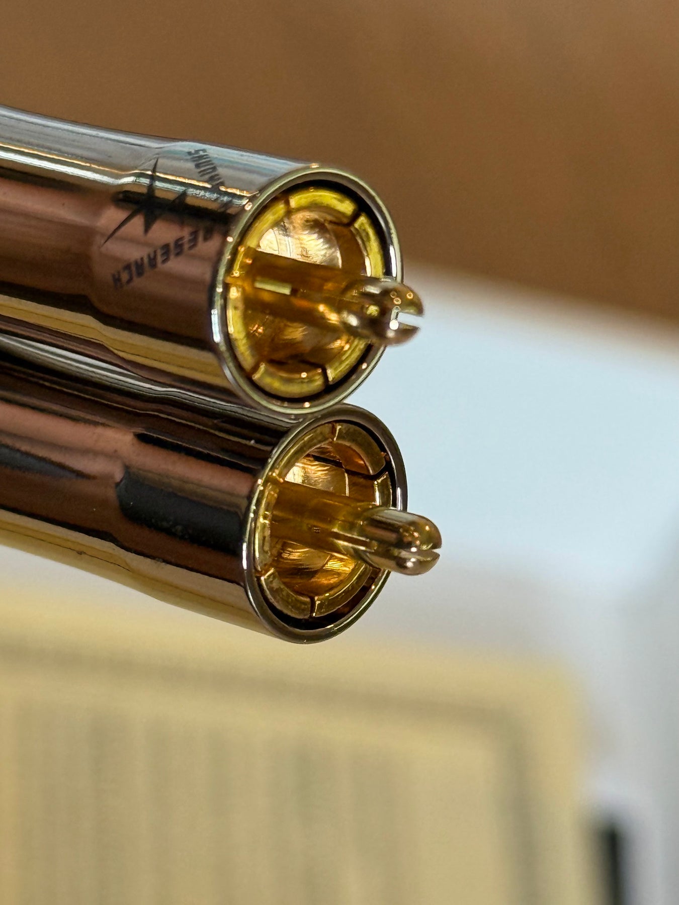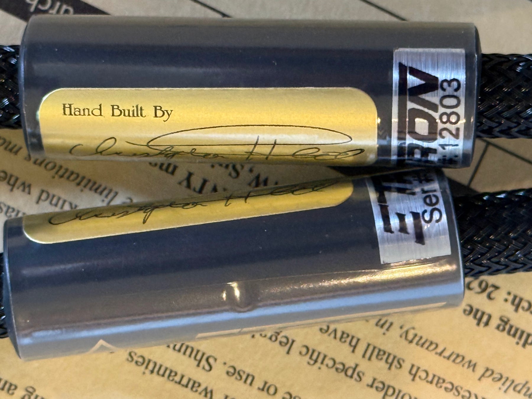 Key Features: ☑ 1M matched pair of RCA interconnects ☑ Advanced E-Tron technology for superior signal fidelity ☑ Premium connectors for optimal contact and conductivity ☑ Ideal for high-performance audio systems ☑ Serial numbers 12802 & 12803 (matched pair) ☑ Handcrafted in the USA