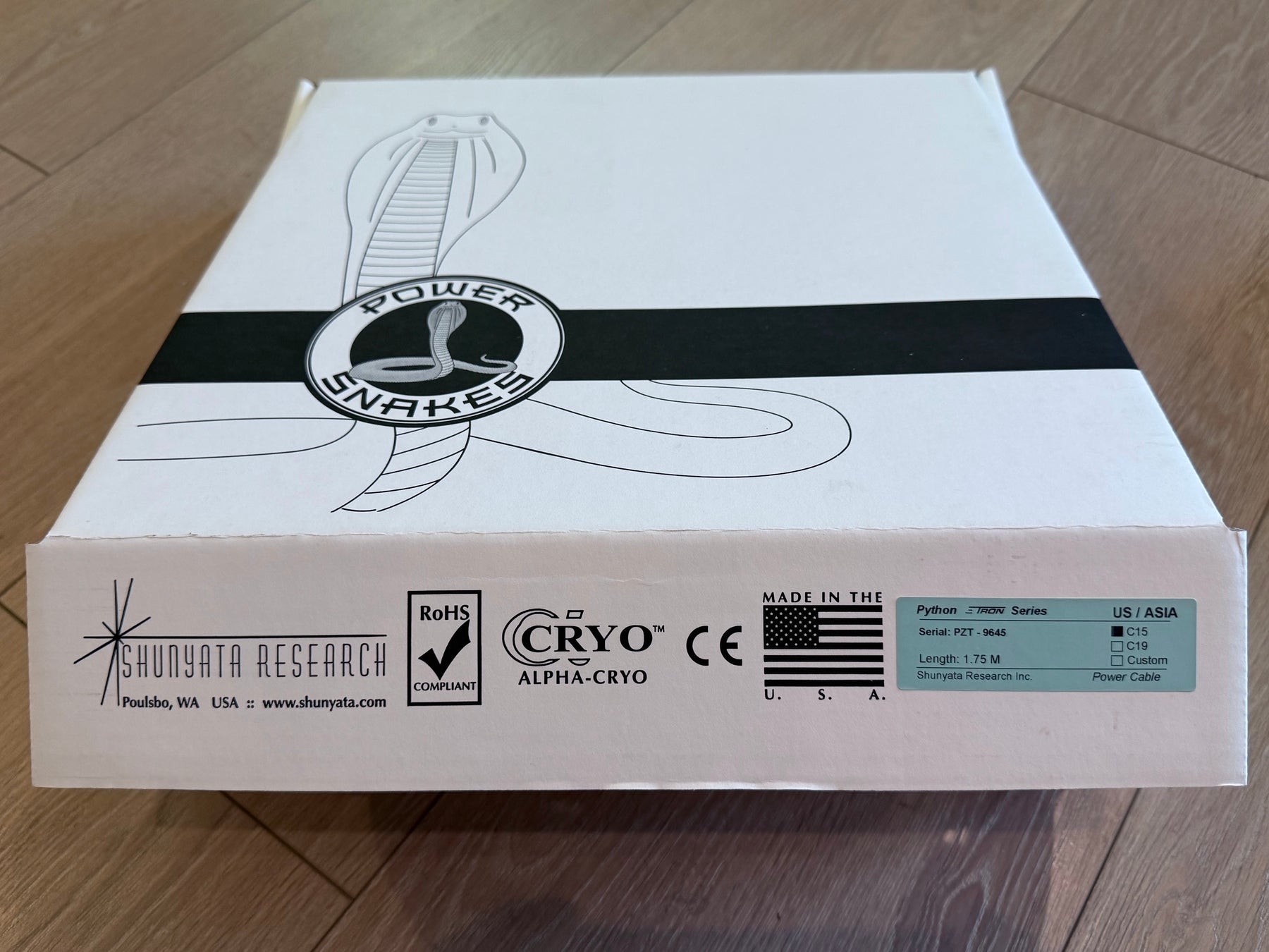 Shunyata Research E-Tron Python Serial 9645 1.75M C15 Power Cord Cable – EXCELLENT, Original Box Included